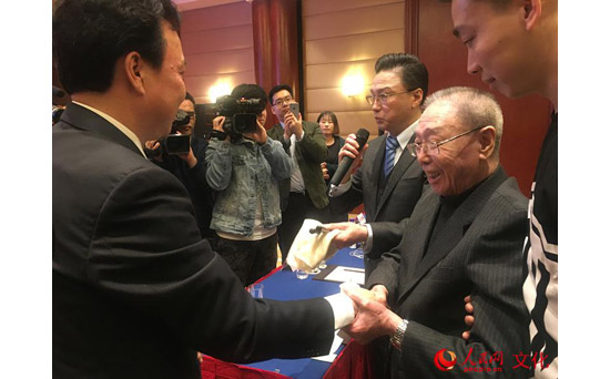 张克受人之托,将谭鑫培先生生前用过的鼓槌归还谭家(人民网陈灿 摄)
