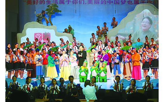 近日,谷建芬在“新学堂歌”音乐会上与孩子们共同演唱。光明图片/视觉中国