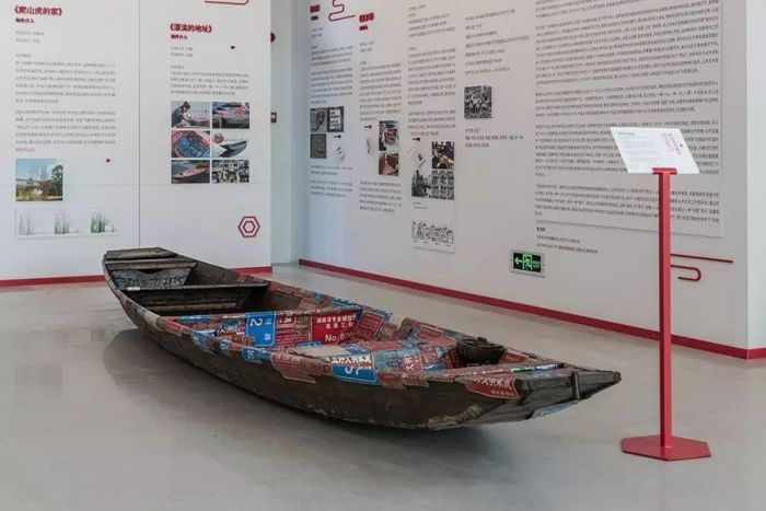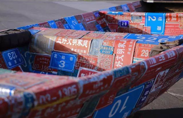 江南棚户区由小渔村发展而来,而门牌标识则是城市居民最显著的户籍标识之一,当老城拆迁,旧门牌消失,代表着旧家园的印记也将消失。将门牌钉在木穿上,被遗弃的标识牌回归最初诞生家园与记忆的渔船,也意味着失去家园的人们犹如渔船漂泊不定。
