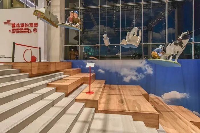 隋建国 《倾斜的桃花源》尺寸可变 玻璃钢喷漆、墙面喷绘 2008