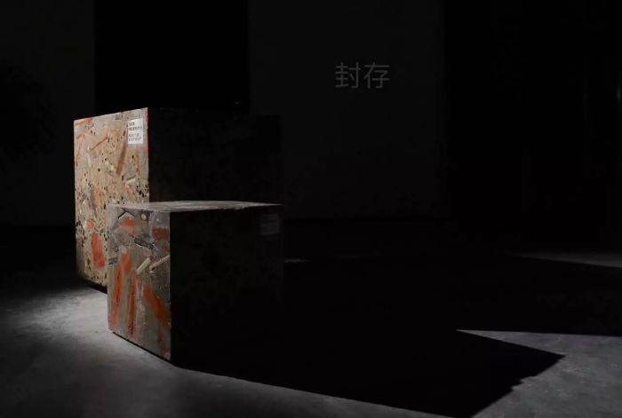 带有房屋特性的建筑废料和遗存物件,用水泥封存成一定尺寸的立方体,待其完全干透硬化,再对立方体的各个面进行切割打磨,呈现出内部材料的各种剖面和表情。最后,将采集到的与住户有关的各类信息雕刻在封存体上,展现从前棚户区内每户人家各自生活的独特印记。