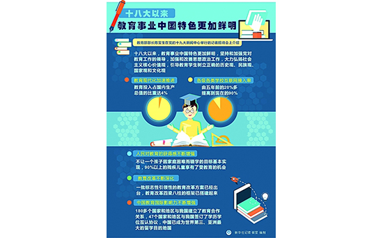 四是实施“教育改革攻坚战”行动,啃下教育改革发展“硬骨头”,不断完善中国特色社会主义教育制度体系,为实现中华民族伟大复兴打牢人才根基。打好提升高校人才培养质量攻坚战,推动高等教育内涵式发展,发布本科专业类人才培养质量国家标准,实施《关于加强高校课堂教学建设提高教学质量的意见》,深化高校创新创业教育改革,推进高校毕业生多渠道就业创业。打好促进教育公平攻坚战,推动城乡义务教育一体化发展,高度重视农村义务教育,加大对少数民族和民族地区教育支持力度,办好特殊教育、网络教育,普及高中阶段教育,努力让每个孩子都能享有公平而有质量的教育。打好深化教育体制机制改革攻坚战,加强普通高中育人方式改革,积极稳妥推进高考改革,支持和规范社会力量兴办教育,完善职业教育和培训体系,深化产教融合、校企合作,办好继续教育,加快推动学习型社会建设,大力提高国民素质。