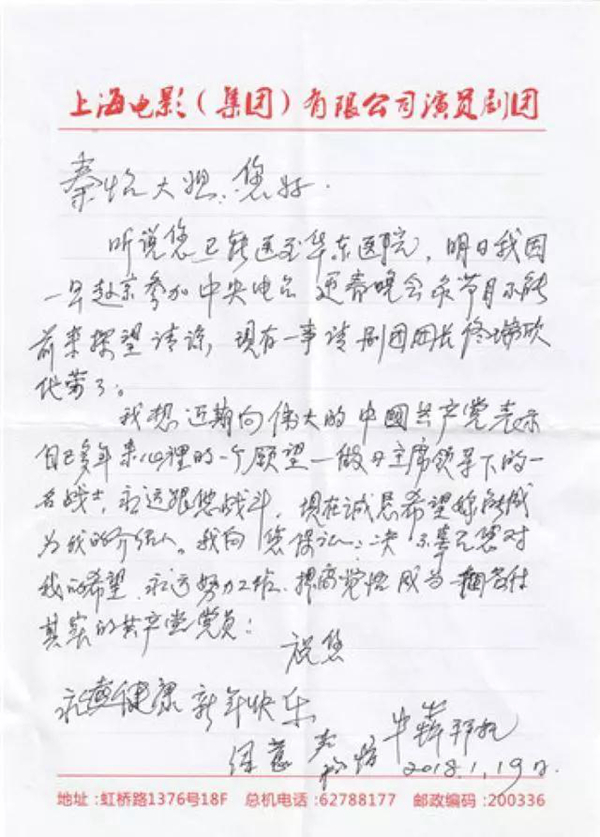牛犇写信给前辈艺术家秦怡和上影集团党委书记任仲伦,希望他们能当自己的入党介绍人