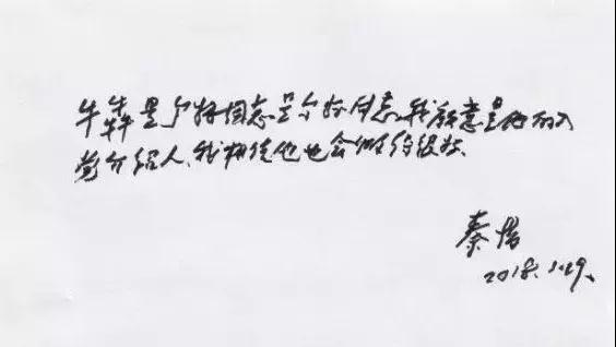秦怡在接到牛犇的亲笔信后,在病榻前向组织写下了自己的意见:“牛犇是个好同志。我愿意是他的入党介绍人,我相信他也会做得很好。”