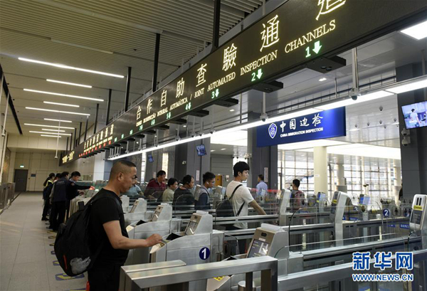 在港珠澳大桥澳门边检大楼,旅客从自助查验通道通关去往广东珠海(11月21日摄)。新华社记者 徐亮 摄