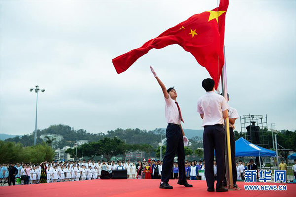 2018年5月4日,澳门学界“五四”青年节升旗仪式在西湾湖广场举行,这是澳门濠江中学学生在升旗仪式上。新华社记者 张金加 摄