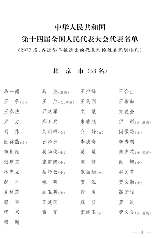 中国人大网2月24日公布《中华人民共和国第十四届全国人民代表大会代表名单》,具体内容如下。