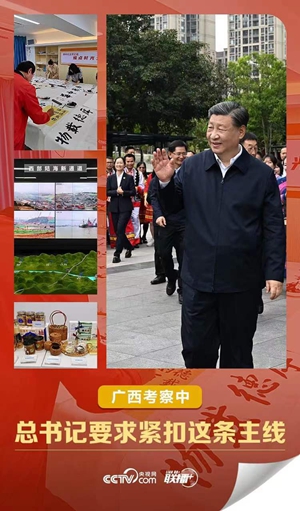 联播+近日,习近平总书记在广西考察时强调,广西要把铸牢中华民族共同体意识作为自治区各项工作的主线,作为推进民族团结进步创建工作的根本方向,巩固发展各族人民团结奋斗的良好局面。