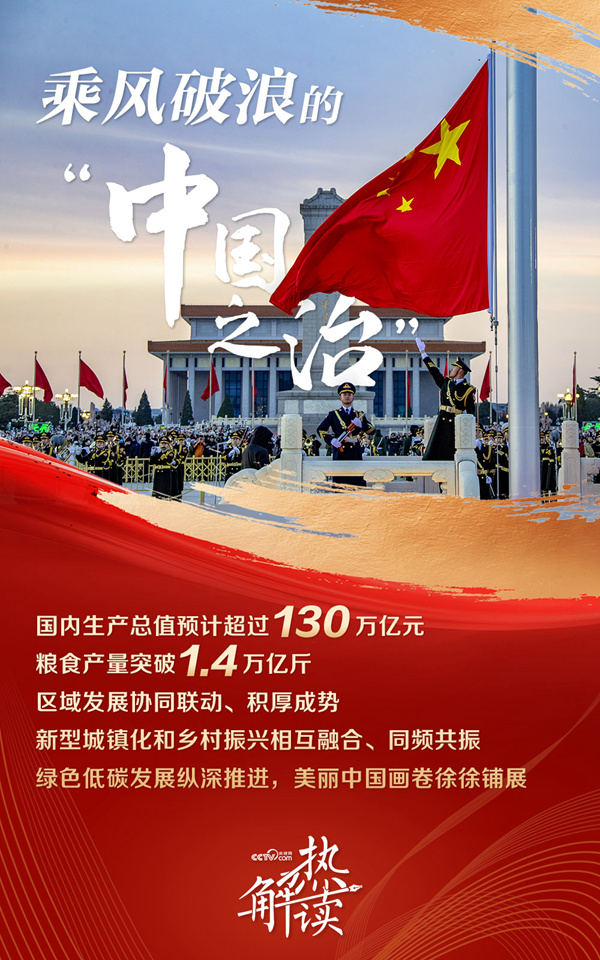 在二〇二〇年新年贺词中,习主席说“我国国内生产总值预计将接近100万亿元人民币”;在二〇二五年新年贺词中,习主席指出“国内生产总值预计超过130万亿元”……节节攀升的经济“曲线”折射出“中国之治”下乘风破浪的活力中国。