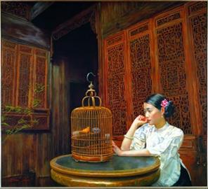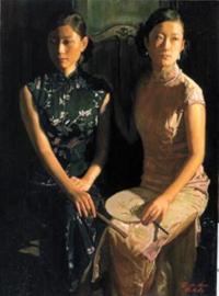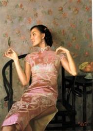 陈逸鸣作品中所表现的唯美主义和理想主义的审美旨趣,与上海这座多元开放的国际化城市的文化性格正相契合。陈逸鸣在高度物质化的都市中凝视和沉思,难能可贵地保持着一个清醒的头脑,一份幽婉的诗情,并且努力在这个消费性的商品世界里构建起一个属于自己的个性化的精神空间。他用形象的视觉特征和色彩,承载起了他对上海都市生活那份沉甸甸的情感的重量,成为表达他对海派文化审美意蕴的符号性的特征语汇。他的“海上淑女”系列作品,通过他的提炼和重组,抽离了原有形象的固有意义,在更为深邃的文化层面上,完成了对传统观念和审美价值的当代阐释,与此同时又依然保持和洋溢着浓浓的海派文化的气息和色彩,画面呈现出一种愉悦惬意的情调,从中感受到一股纯正的“海味”。