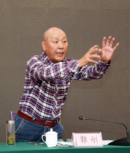郭刚在讲述《曲艺基本功的训练及应用》时,结合现场示范表演告诉大家如何表达“喜、怒、忧、思、悲、恐、惊”七种神情;如何应用“手、眼、身、法、步”;如何将“召之即来、挥之即去、恰到好处、不留痕迹”绝妙配合等,言简意赅,切中要害。