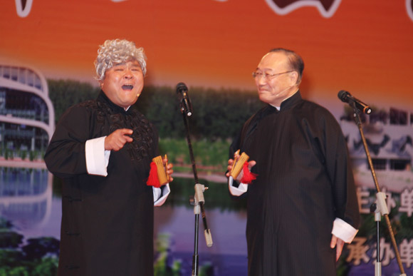 培训期间,一场“到人民中去”曲艺专场演出在中卫市文化广场火热上演,精彩的节目驱散了西部秋日的丝丝凉意。坐唱、弦鼓说唱、花儿等宁夏特色节目以及曲艺名家李立山、王文水表演的数来宝,武宾、白永蔚、赵鹏涛合说的相声,杨菲表演的含灯大鼓使广场变成了欢乐的海洋。