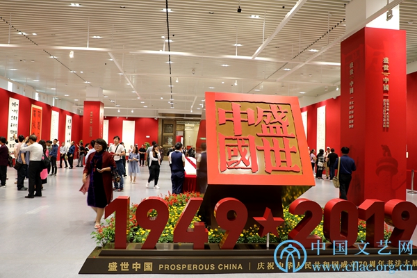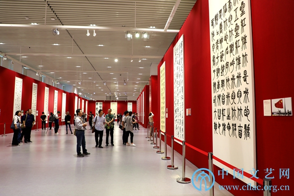 9月25日,“盛世中国——庆祝中华人民共和国成立70周年书法大展”开幕式在中国人民革命军事博物馆举行。图为展厅现场。中国文艺网 张钰童 摄