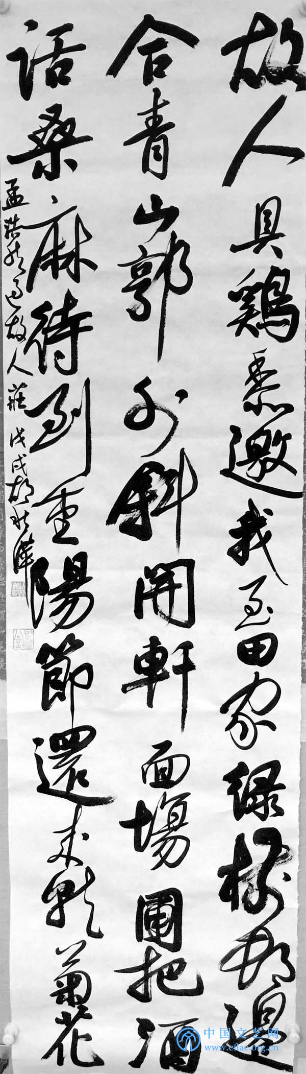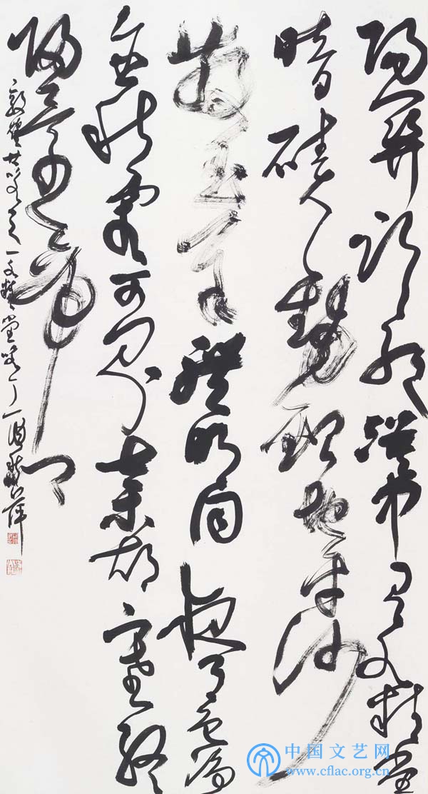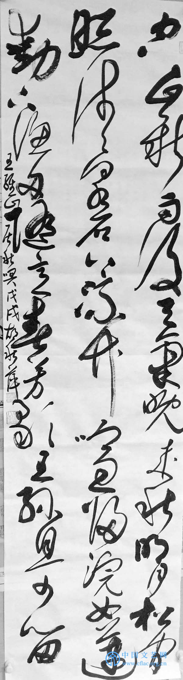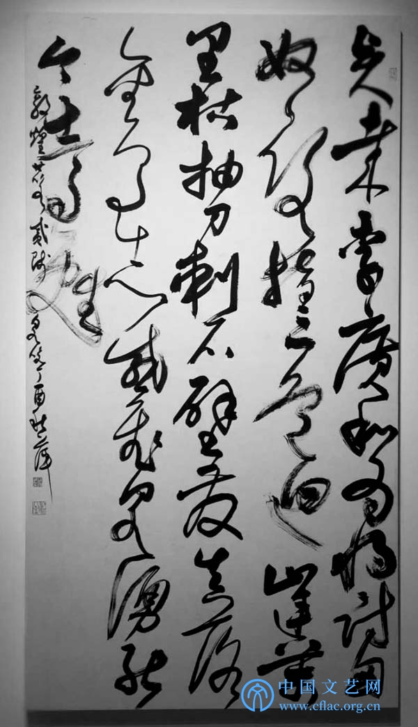 胡秋萍以一手大气超拔的行草书独树一帜。她的书法师出王铎的雄强,参以魏碑的质朴,吸收现代书法的构成,加之魏晋书法的细腻灵动,章法跌宕有致,纵横捭阖,墨色对比大胆,用笔方圆兼修,走出了一条特立独行的成功探索之路。她写散文,作诗词,能吟诵,兴趣广泛。这些都滋润了她书法的厚度与风采。她有胆识,有中原豪士的雄姿,也不乏女性的婉约。 她长于大幅草书,纵横恣肆之间流溢着洒脱,具有阳刚之气。她书法的感人之处,也来于她的情致、情愫、情思。陆游所谓“汝果欲学诗,功夫在诗外”,书法亦然。不学无文、生活无趣,必将有字匠之讥,哪里谈得上书法?文化的意义,大抵在此。她认为书法是书写智慧的艺术,她曾说: “以笔墨和汉字书写作为载体,实现了我对美与永恒的追求,也是我作为当代艺术工作者的个性化视角诠释和艺术表达。借由此,也是我对生命终极意义不断地探索、追求。”