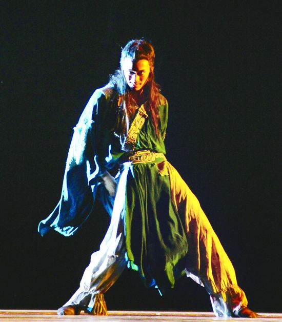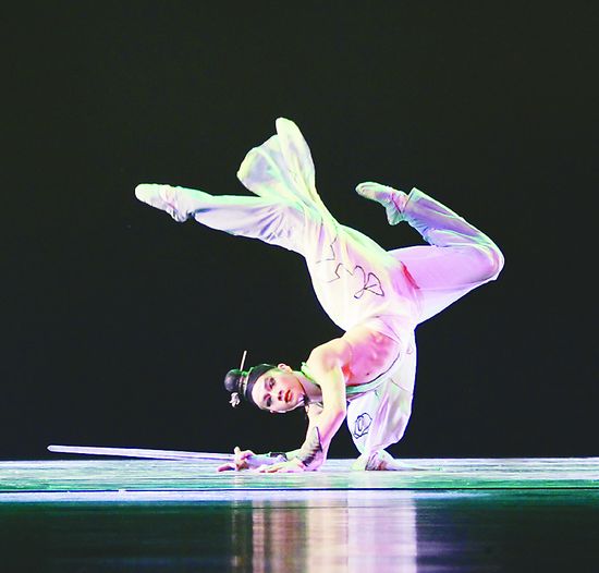 取材于历史人物是古典舞创作中非常重要的一脉,这类作品在本届评奖中不在少数。比较而言,独舞《济公》和《勾践》在用肢体语言刻画人物性格的过程中特别注重细节的设计和处理。“勾践”内心的隐忍和渴望复仇的强力意志与他外表苟且的矛盾冲突,在舞者肢体动作力效的瞬间转换和强弱对比中,被清晰、准确地传递给了观众。《济公》的编导对人物性格及形象的把握堪称形神兼备、得心应手,武思明的表演也仿佛再“烧了一把火”,简直就叫入木三分!