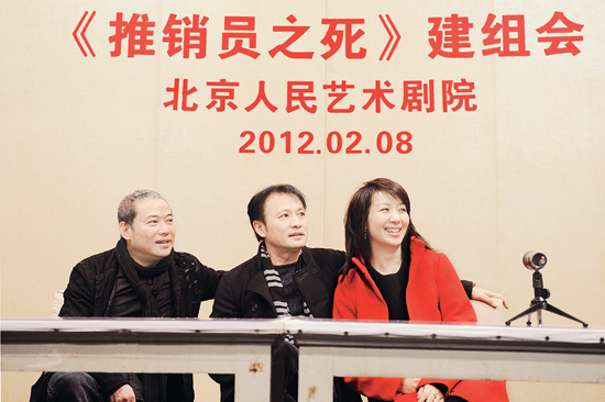 导演李六乙、主演丁志城和卢芳在新版《推销员之死》建组会现场