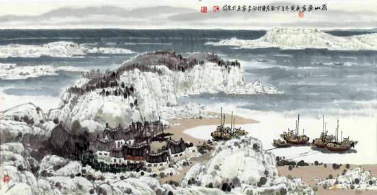 丁宁原 《成山渔家》68cm x 136cm