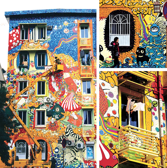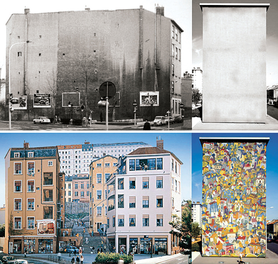法国里昂城市壁画对城市闲置立面美化前后效果对比明显
