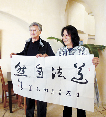 赵长青向名嘉睦稔赠送书法作