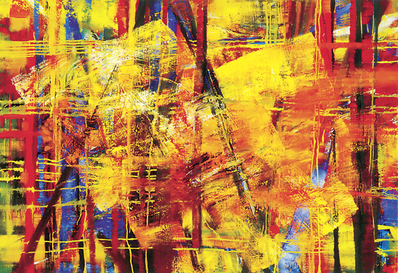 周锡玮的线条颇有讲究,看上去笔直的线条蕴藏着丰富的变化。“它可能不是一条实在的黑线,可能是条曲线,有虚实,有间层,带有不同的颜色,有前后远近。”周锡玮自述道:“我的思考是自然的思考,不给自己太多的限制,我要从内心去表达,去画真正的自我。”