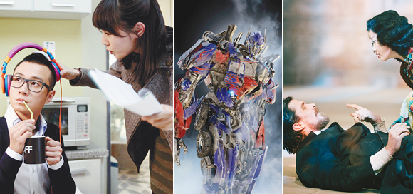 图片从左至右依次为电影《失恋33天》《变形金刚2》《金陵十三钗》剧照,这些作品都在客观上契合了受众文化消费的某种心理需求,创造了票房奇迹。