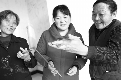 山东省无棣县小泊头镇东芦马村村民高金香和雷祥和正在三弦书传承人朱延安的指导下演唱三弦《酒色财气》。朱延安是山东省曲协会员,也是该县的市级非物质文化遗产三弦书的创始人。蒋惠庆 冯晓华摄
