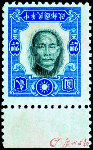 在2011年香港的拍卖市场上,一枚“纽约版孙中山像2元中心倒印”邮票,最终的成交价为172.5万港元。