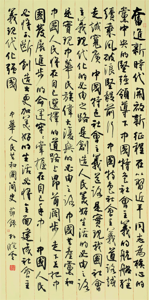 继去年在中国国家博物馆成功举办了“伟业——庆祝中国共产党成立100周年书法大展”,以书法艺术展现百年党史,今年中国书协又组织老中青三代300多位书法家精心创作、反复遴选的300余件作品,在国博再次展出“征程:迎接庆祝党的二十大胜利召开书法大展”,是艺术家们用翰墨记录历史、讴歌时代、书写人民、赞美英雄、锤炼自身的生动写照。