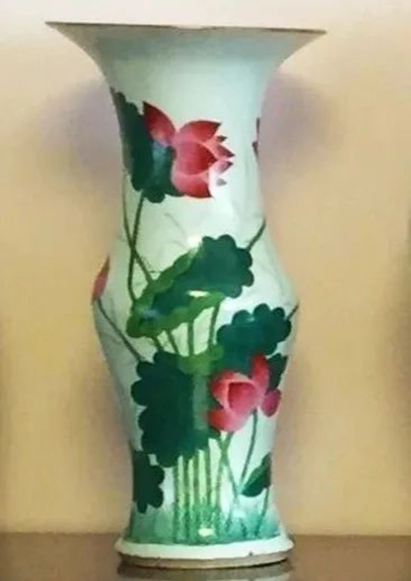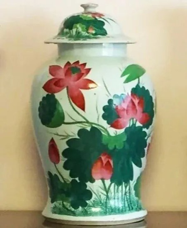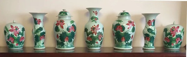 1992年,有一天我接到老孙来电,说收上来一堂瓷器,让我尽快去看看。老孙是我在密云的上线之一。周日,我带着儿子来到家住农村的老孙家,看见客厅柜子上摆着四件粉彩荷花瓷器,两件将军罐,两件花觚,画工精美,釉面饱满,完好无损,品相一流,圈足泚有像模像样的火石红,一看就知是清末民初的东西。成堂的瓷器,只有单数,没有双数,最少是三件套,以此类推,五件套,七件套,九件套,十一件套,最多是十三件套。