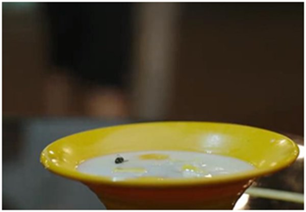 剧中成人与孩子的博弈还体现在朱朝阳与父母、严良与老陈的关系中。朱朝阳生活在“牛奶与苍蝇”式的原生家庭里,母亲看似温暖的热牛奶其实是过度自我牺牲而要求孩子强制服从的爱。父亲请他吃甜品,企图从他口中套出妹妹死的真相并暗中用录音笔录下。最后,甜品上漂浮的死苍蝇则代表了虚假短暂温情下的怀疑与芥蒂。在这场博弈中,朱朝阳无疑是胜者,他一口喝掉牛奶时眼神里的怨憎让母亲彻底崩溃。他笃定地向父亲表忠心却让父亲忏悔得涕泗横流。此时,他心中真实的邪恶已在隐蔽的角落里慢慢生长。