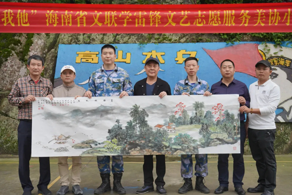 为深入贯彻落实习近平总书记在中国文联十一大、中国作协十大开幕式上的重要讲话精神,更好地发挥文艺工作者在推进乡村振兴、海南自贸港建设中的重要作用,近日,海南省文联副主席、海南省美协副主席兼秘书长阮江华带领海南省美协文艺志愿服务小分队赴军营开展2022“文艺进万家 健康你我他”海南省文联学雷锋文艺志愿服务省美协小分队走进军营慰问,向驻守边疆的官兵们送书画。这是海南省文联2022年“文艺进万家 健康你我他”学雷锋文艺志愿服务系列活动之一。
