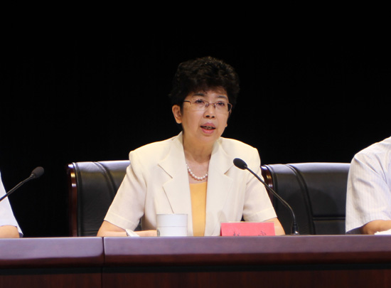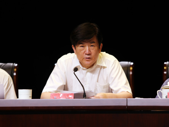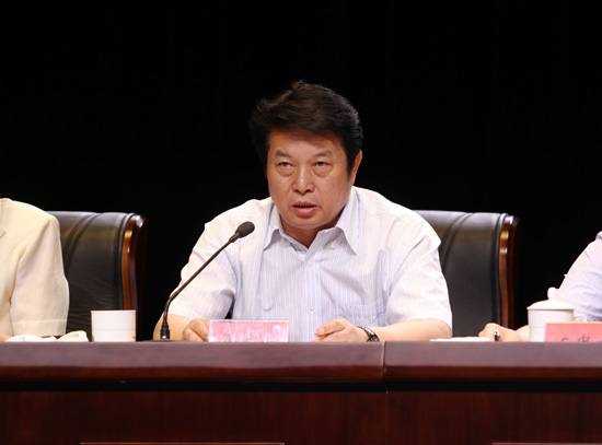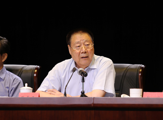 中央教育实践活动第25督导组组长张基尧在会上讲话 高晴 摄