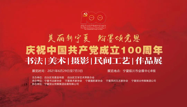 为庆祝中国共产党成立100周年,充分展示塞上儿女在伟大的中国共产党领导下同心同德、奋发有为、拼搏进取建设美丽新宁夏所取得的辉煌成就,由宁夏回族自治区党委宣传部、宁夏回族自治区文学艺术界联合会共同主办,宁夏书法家协会、宁夏美术家协会、宁夏摄影家协会、宁夏民间文艺家协会和宁夏报业传媒集团承办的“美丽新宁夏 翰墨颂党恩——庆祝中国共产党成立100周年书法美术摄影民间工艺作品展”,在火红的七月,唱响了以翰墨丹青歌颂伟大的党和伟大时代的赞歌!