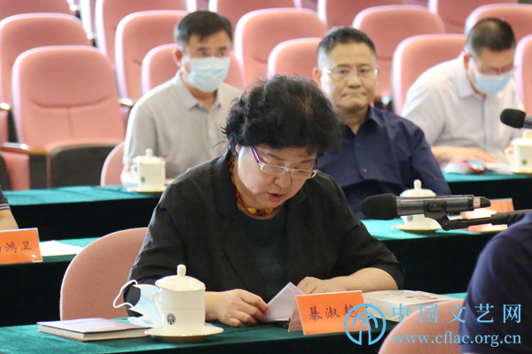 8月29日,中国文联党组理论学习中心组召开《习近平谈治国理政》第四卷专题学习研讨会。图为中国文联权益保护部主任暴淑艳作交流发言。中国文艺网 李想 摄