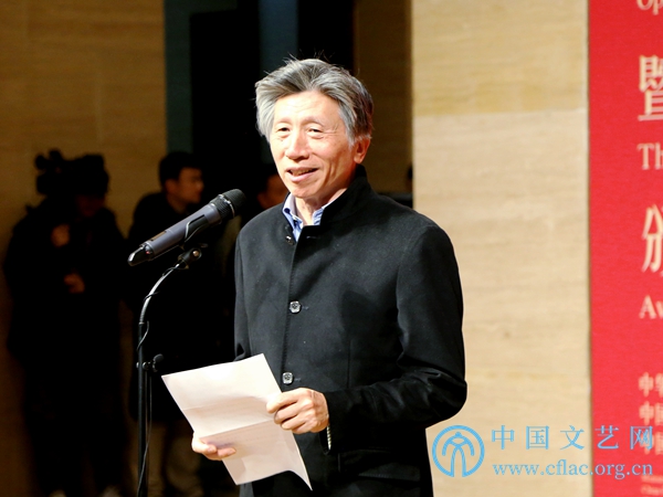 12月20日,第十三届全国美展进京作品展开幕式暨第三届中国美术奖颁奖仪式在京举行,图为中国美协主席范迪安在开幕式上致辞。中国文艺网 韩雪竹摄
