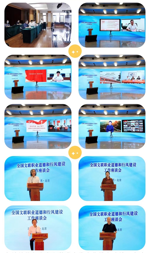 5月31日,全国文联职业道德和行风建设工作座谈会以线上线下相结合的方式召开。这是中国文联首次召开职业道德和行风建设全国性专题会议,旨在深入学习贯彻习近平总书记在中国文联十一大、中国作协十大开幕式上的重要讲话精神,贯彻落实中宣部文娱领域综合治理工作部署,对全国文联行风建设及文娱领域综合治理工作进行阶段性回顾,对当前和今后一个时期职业道德和行风建设工作作进一步部署,以更加务实的举措、更加积极的行动,引导广大文艺工作者自觉追求德艺双馨,营造山清水秀的文艺生态。