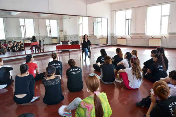 中国煤矿舞蹈家协会主席丁瑞华为阳煤集团各文工团的舞蹈演员示范动作