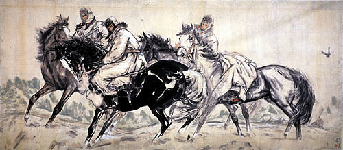 中国画作品《巡逻图》