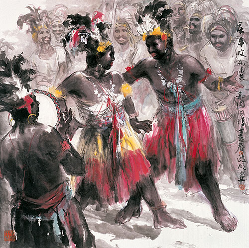 陈政明 庆丰收-刚果共和国风情 90cm×90cm 2007年 纸本