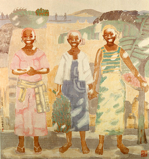 田黎明 多哥 风光与人物 90cm×90cm 2007年 纸本