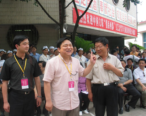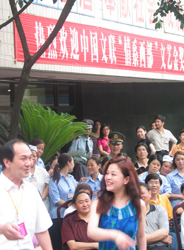 为了表达对辛勤劳动的工人们的敬意,演出团的艺术家们在酒厂的空地上为茅台人献上了精彩的节目。在中国文联副主席、演出团副团长刘兰芳的主持下,马小平、曹立、杨帆、张霞表演的相声小品,雷佳、王莹演唱的歌曲,姜昆和戴志诚表演的相声,李文和刘华表演的黄梅戏选段,赢得工人师傅们的热烈掌声,现场气氛十分热烈。刘兰芳在主持节目的同时,也为工人们献上了精彩节目。
