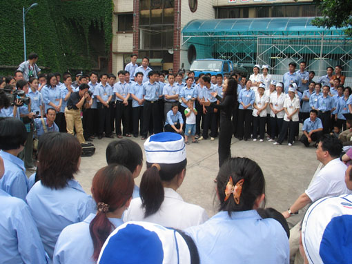 工人师傅们没想到在工厂里就能看到名家的演出。 |